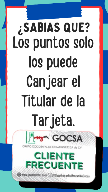 Grupo Occidental de Combustibles S.A. de C.V. ha decidido lanzar una campaña de fidelización de clientes de CONTADO, con una tarjeta de CLIENTE FRECUENTE la cual serviría para acumular puntos por cada litro cargado de gasolina PREMIUM Y MAGNA. Esto se llevará a cabo a partir del día 02 de diciembre de 2019.